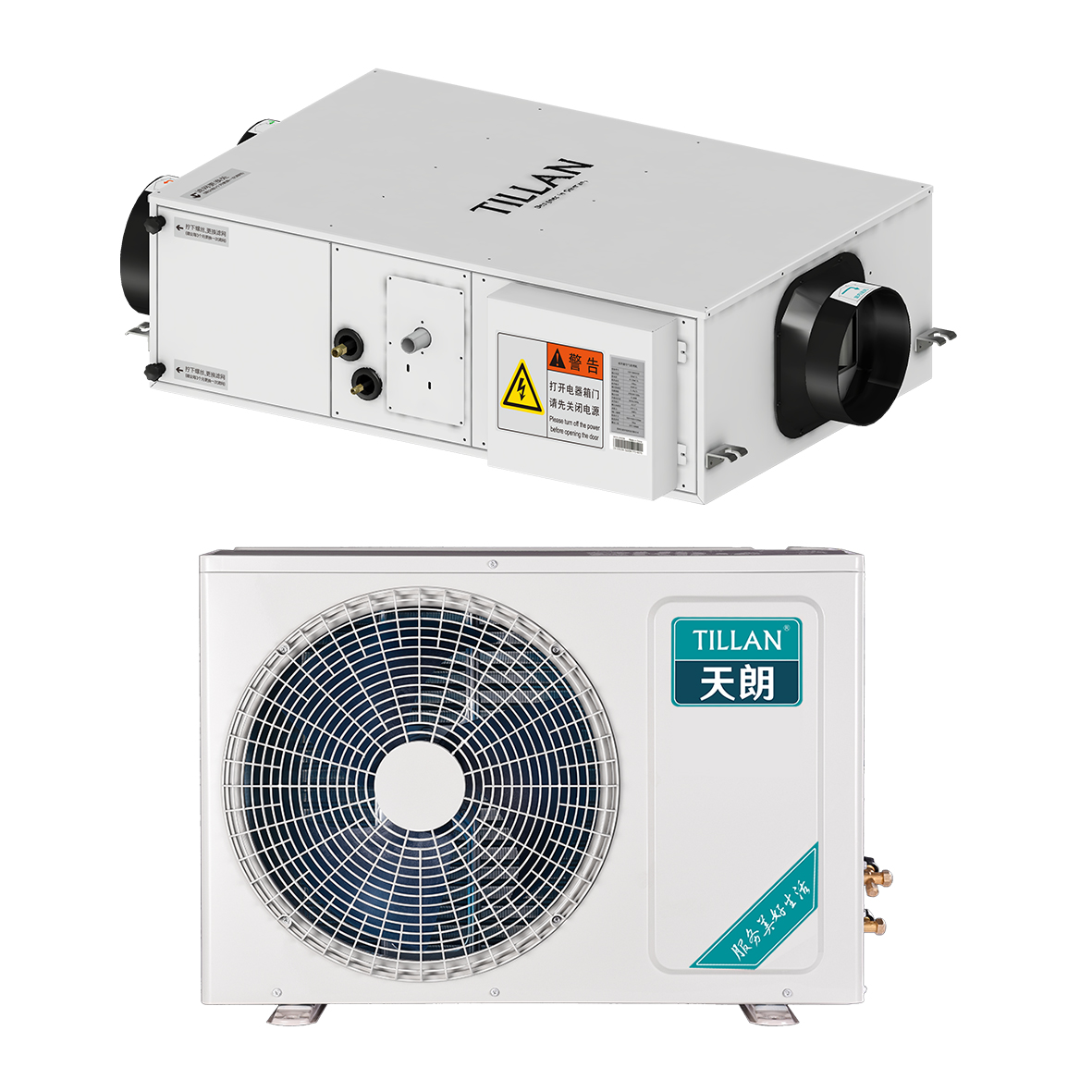全直流變頻分體雙冷源直膨空氣處理機(jī)(分體吊頂式) FXF8.6-D50/DSF1E5.2 | 【直流變頻雙轉(zhuǎn)子壓縮機(jī),額定送風(fēng)量500m3/h,新風(fēng)量0-500m3/h,機(jī)外余壓0-200pa,機(jī)組噪音:內(nèi)37dB(A)/外53dB(A),額定除濕量8.6L/h,額定功率1480W,最大功率1850W,機(jī)組重量:內(nèi)45kg/外35kg,R410a環(huán)保冷媒1.5kg,空氣側(cè)過濾器:G4+F9,標(biāo)配:冷凝水提升泵、空氣質(zhì)量傳感器,選配:內(nèi)置加濕模塊,內(nèi)機(jī)尺寸:900×600×285mm,外機(jī)尺寸:795×290×555mm】 | 配套≤150㎡五恒系統(tǒng) 或≤250㎡二聯(lián)供系統(tǒng) |