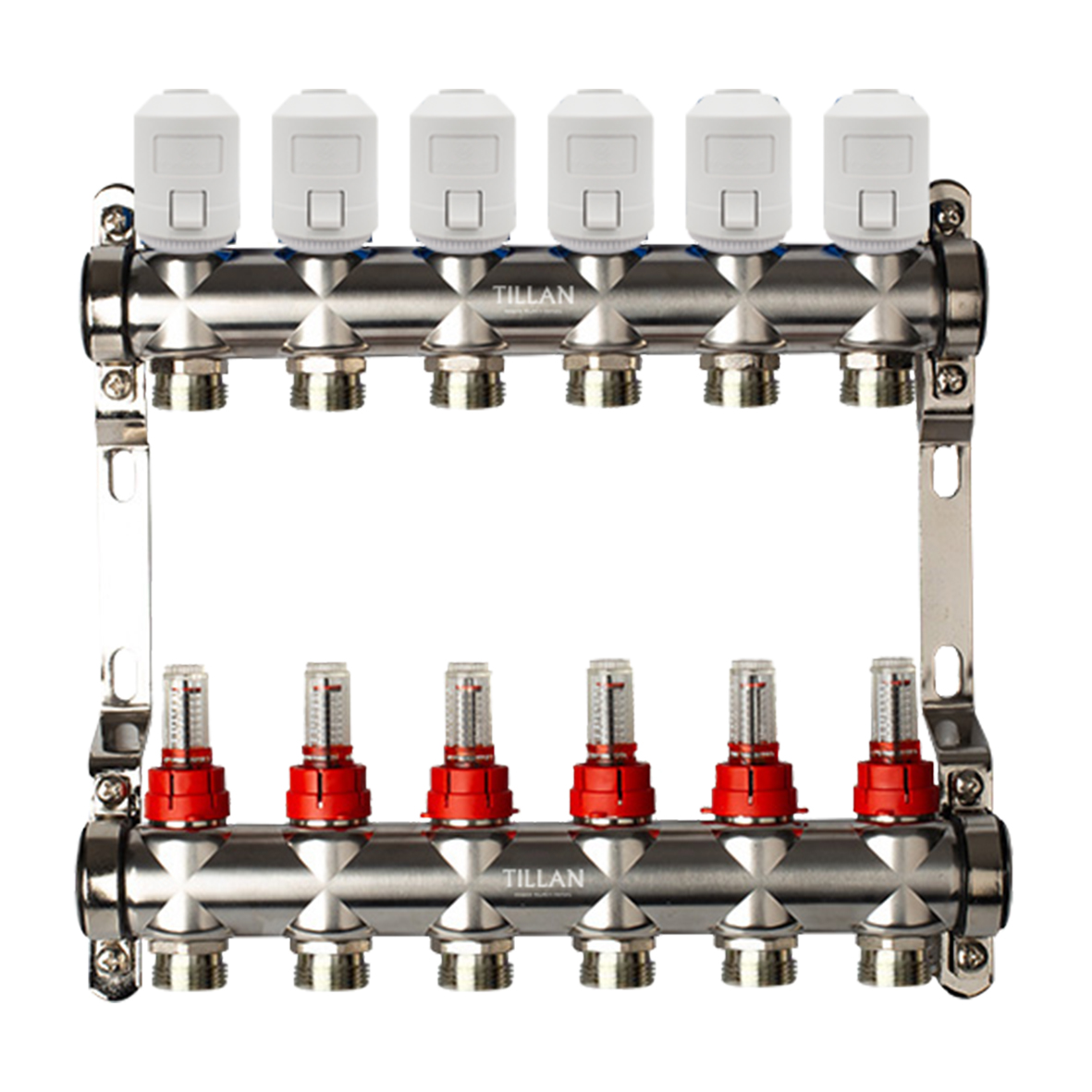 不銹鋼分集水器用于家用輻射采暖系統(tǒng),例如地暖等;主管材質(zhì)為不銹鋼SUS304,耐腐蝕;閥芯材質(zhì)為高強度塑料,流阻小、使用壽命長
